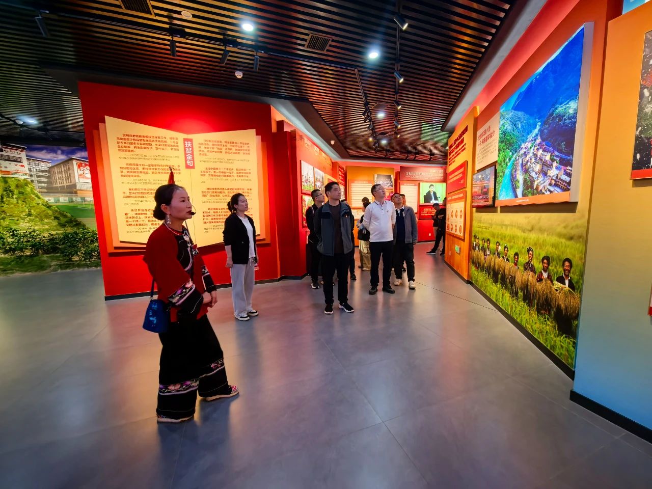 隨后,大家在講解員的帶領(lǐng)下,參觀了精準(zhǔn)扶貧主題陳列館,重走習(xí)近平總書記考察路線,還參觀了苗繡非遺扶貧工坊等標(biāo)志性場(chǎng)所,親身感受了十八洞村在黨的關(guān)懷下,從貧窮落后小山村到脫貧攻堅(jiān)樣板村的美麗蛻變。最后,全體黨員在精準(zhǔn)扶貧廣場(chǎng)重溫入黨誓詞,鏗鏘有力的誓言在美麗的山谷回蕩,傳遞著全體黨員們“聽黨話、跟黨走”的堅(jiān)定信念。
